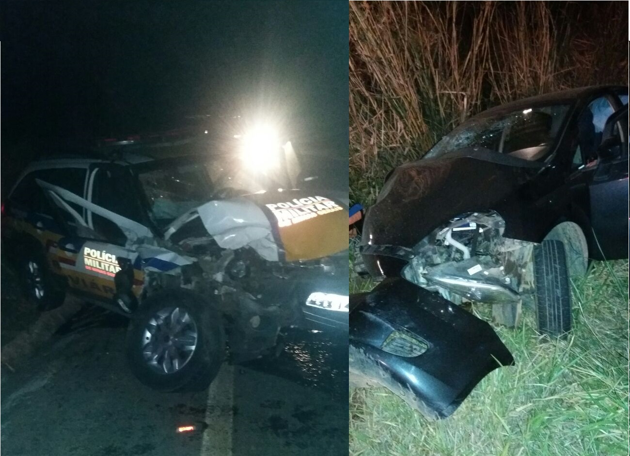 viatura policial que vinha em sentido contrario.